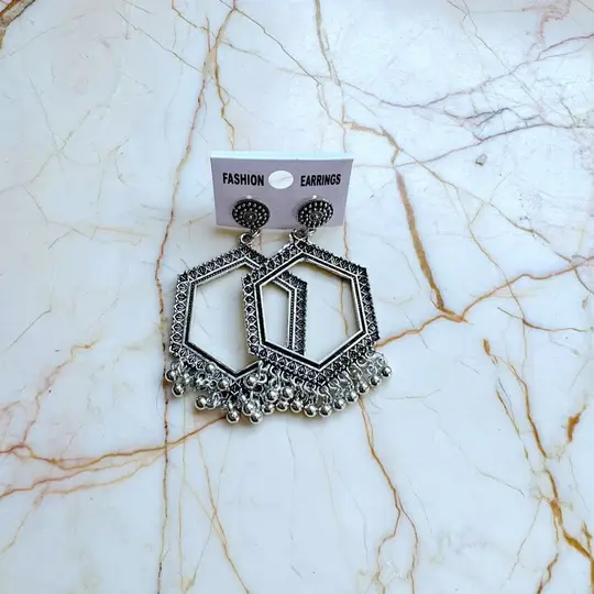 Silver hexagon earing /jumkha bezel